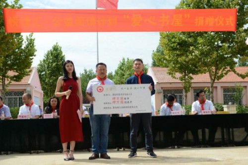 主辦方領(lǐng)導(dǎo)與愛(ài)心企業(yè)家們?yōu)閻?ài)心書屋揭牌
