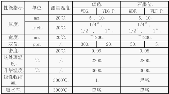 1.石墨硬氈熱處理溫度高(處理溫度約2250℃),具有低收縮率,低揮發(fā)物釋放量等優(yōu)點(diǎn);